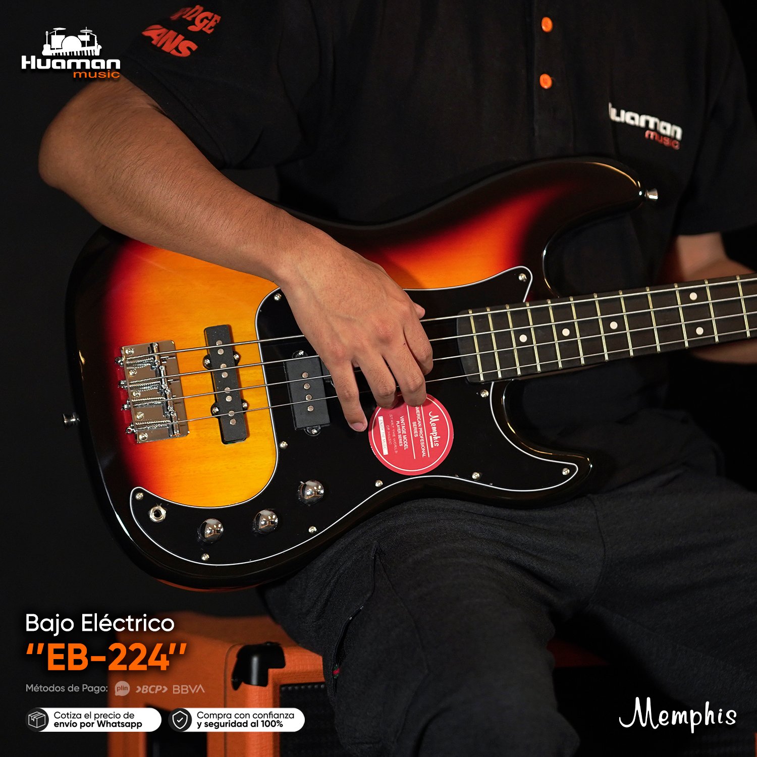 El bajo eléctrico Memphis de 4 cuerdas está diseñado para quienes dan sus primeros pasos en el mundo del bajo y buscan un instrumento confiable, cómodo y con un sonido versátil. Su diseño clásico tipo vintage, combinado con una construcción robusta, lo convierte en una excelente opción para estudio, práctica diaria y ensayos.