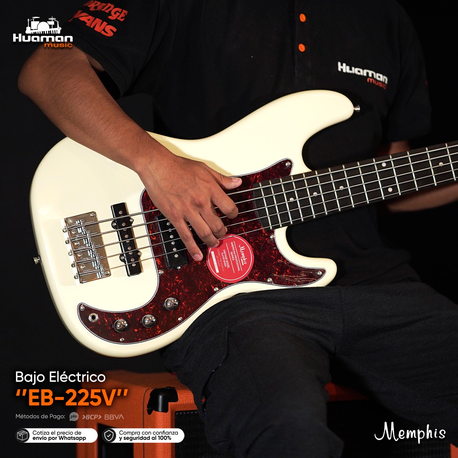 El bajo eléctrico Memphis de 5 cuerdas está diseñado para músicos que buscan mayor rango tonal desde sus primeras etapas, sin dejar de lado la comodidad y facilidad de ejecución. Su diseño clásico tipo vintage y su construcción sólida lo convierten en una excelente opción para estudio, práctica constante y ensayos.