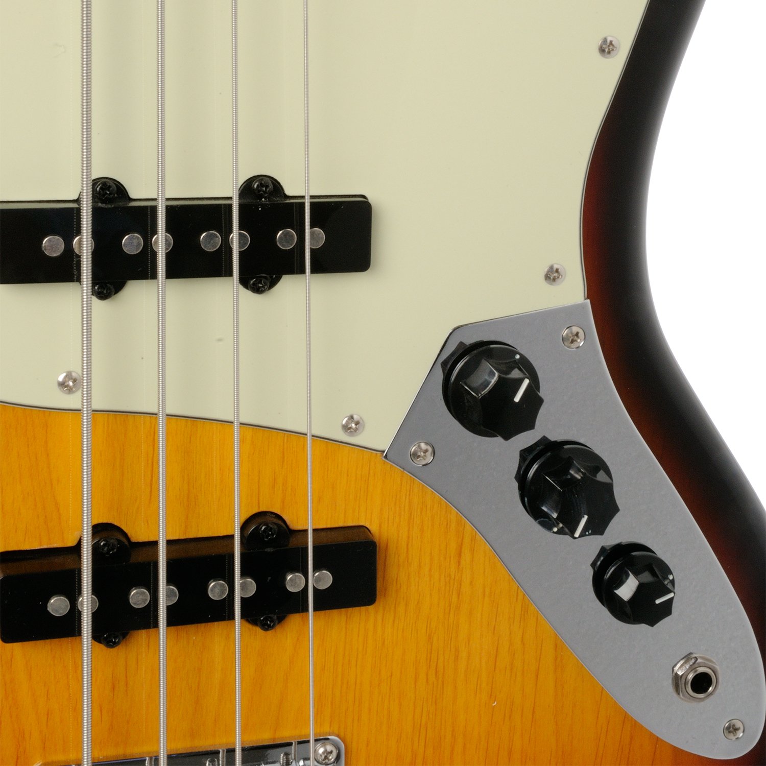 El VJB-200V Sunburst es el bajo eléctrico de 4 cuerdas de la serie «Tribute Vintage» de Eko Guitars. Inspirado en el legendario Jazz Bass, cuenta con cuerpo de tilo, mástil de arce y diapasón de resina Eko WPC de 21 trastes. Incorpora dos pastillas JB con controles de volumen y tono independientes. Ideal para el bajista que busca un instrumento fiable, versátil y de alto rendimiento a un precio asequible.