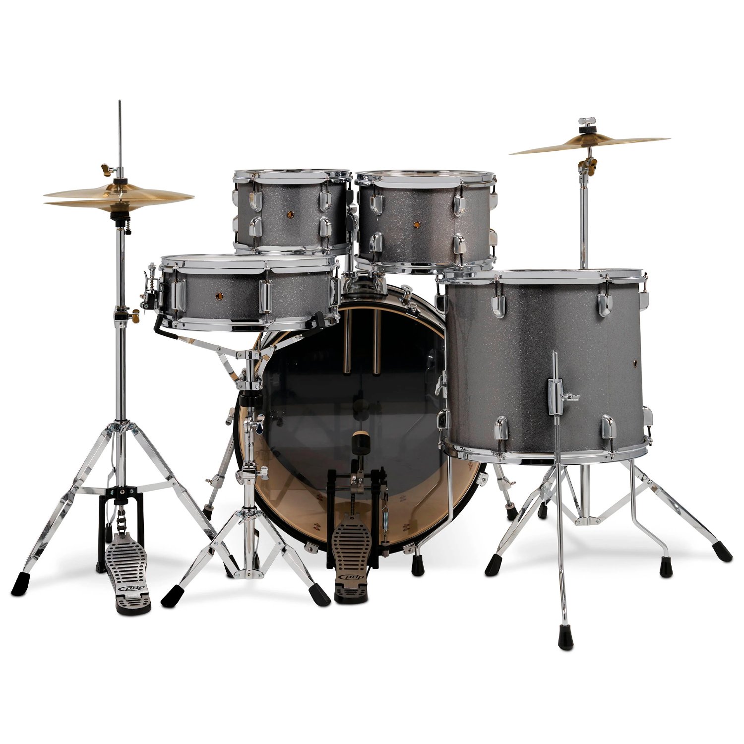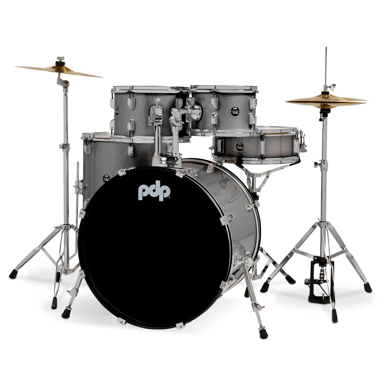 Las baterías PDP Center Stage son el punto de partida perfecto para el baterista en ciernes. Con cascos multicapa 100% álamo, estas baterías producen un sonido equilibrado con graves cálidos que ayudan a los bateristas principiantes a desarrollar sus habilidades. Los cascos de caja y tom están equipados con varillas de tensión True-Pitch de DW, que ofrecen un 20 % más de roscas por pulgada cuadrada para una afinación más precisa y estable. El bombo cuenta con espuelas telescópicas para evitar el deslizamiento durante las sesiones de práctica intensas. Esta configuración incluye toms montados de 7×10″ y 8×12″, un tom de piso de 14×16″, un bombo de 16×22″ y una caja de 5×14″. El set incluye un paquete de platillos, hi-hats de 13″ y un crash-ride de 15″, y se completa con un paquete completo de herrajes, trono y baquetas.