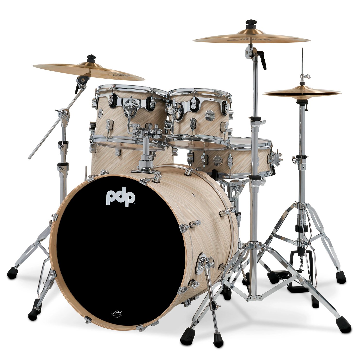 La serie PDP Concept Maple fue diseñada por DW en California con un espíritu de inspiración personalizada y equipada con innovaciones de hardware para una experiencia de interpretación de alta gama. Estos tambores cuentan con cascos de arce europeo con un ataque potente, un tono cálido y versátil con gran resonancia. Los toms de 7 capas incorporan el sistema de montaje de toms con suspensión (STM) patentado por DW para reducir la tensión y aumentar el sustain, mientras que los bombos Concept están equipados con ganchos de garra de fundición a presión de baja masa. Las cajas Concept de 10 capas vienen de serie con un confiable mecanismo de desbloqueo MAG de DW, junto con cables de caja totalmente cromados, con bobinas de acero al carbono y placas de extremo cromadas. Estos tambores están equipados con aros de contrapeso graduados, soportes de doble torreta y varillas de afinación True-Pitch de DW con un 20 % más de rosca para un mejor control de la afinación. Cada tambor está equipado con parches Remo para garantizar que estén listos para tocar desde el primer momento. Este paquete de 5 cascos PDP ofrece una gran versatilidad, con toms montados de 8×10″ y 9×12″, un tom de piso de 14×16″, una caja de 5,5×14″ y un bombo de 18×22″. Cada bombo está equipado con parches Remo para garantizar que esté listo para tocar desde el primer momento. Los platillos y el hardware se venden por separado. *