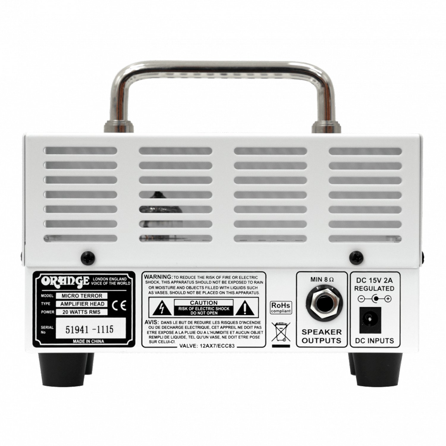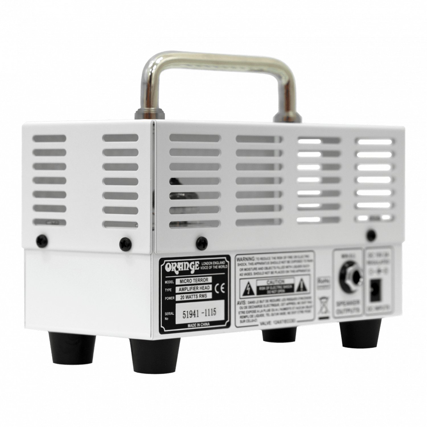 El Micro Terror ha sido construido con las mismas especificaciones robustas que los amplificadores Orange más grandes y su portabilidad lo hace perfecto para tocar en la ciudad o ensayar. El Micro Terror ofrece unos sorprendentes 20 vatios del clásico tono Orange. Con 13,5 cm de alto y 16,5 cm de ancho, el Micro Terror es uno de los cabezales de amplificador más pequeños del mercado.