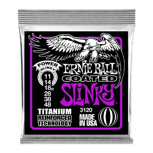 Las cuerdas para guitarra eléctrica Ernie Ball Slinky Coated combinan los últimos avances tecnológicos en la fabricación de cuerdas. Todas las cuerdas entorchadas están tratadas con una innovadora nanotecnología que repele la humedad y los aceites no deseados que afectan negativamente al tono. Además de tratar las cuerdas entorchadas, cada cuerda simple cuenta con un bobinado de refuerzo patentado de alambre de titanio. La resistencia inherente del titanio evita que las cuerdas se rompan y se deslicen, y se ha demostrado que mantiene las cuerdas de la guitarra afinadas mejor que las cuerdas simples convencionales. Las cuerdas de guitarra Ernie Ball Slinky Coated mantienen la sensación y el sonido de los juegos sin revestimiento, combinando la protección adicional con el tono vibrante en el que los clientes de Ernie Ball han confiado durante más de 50 años. Calibres .011, .014, .018p, .028, .038, .048
