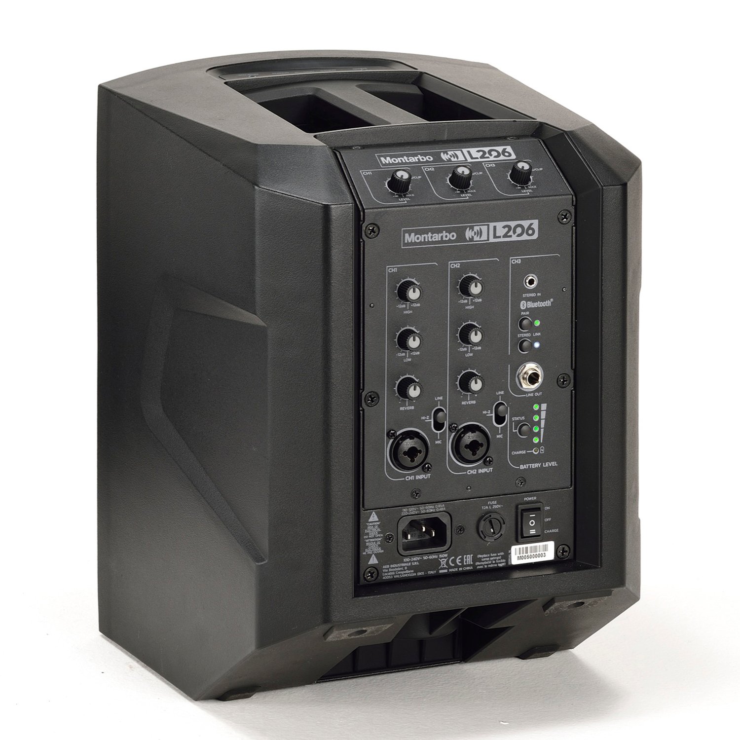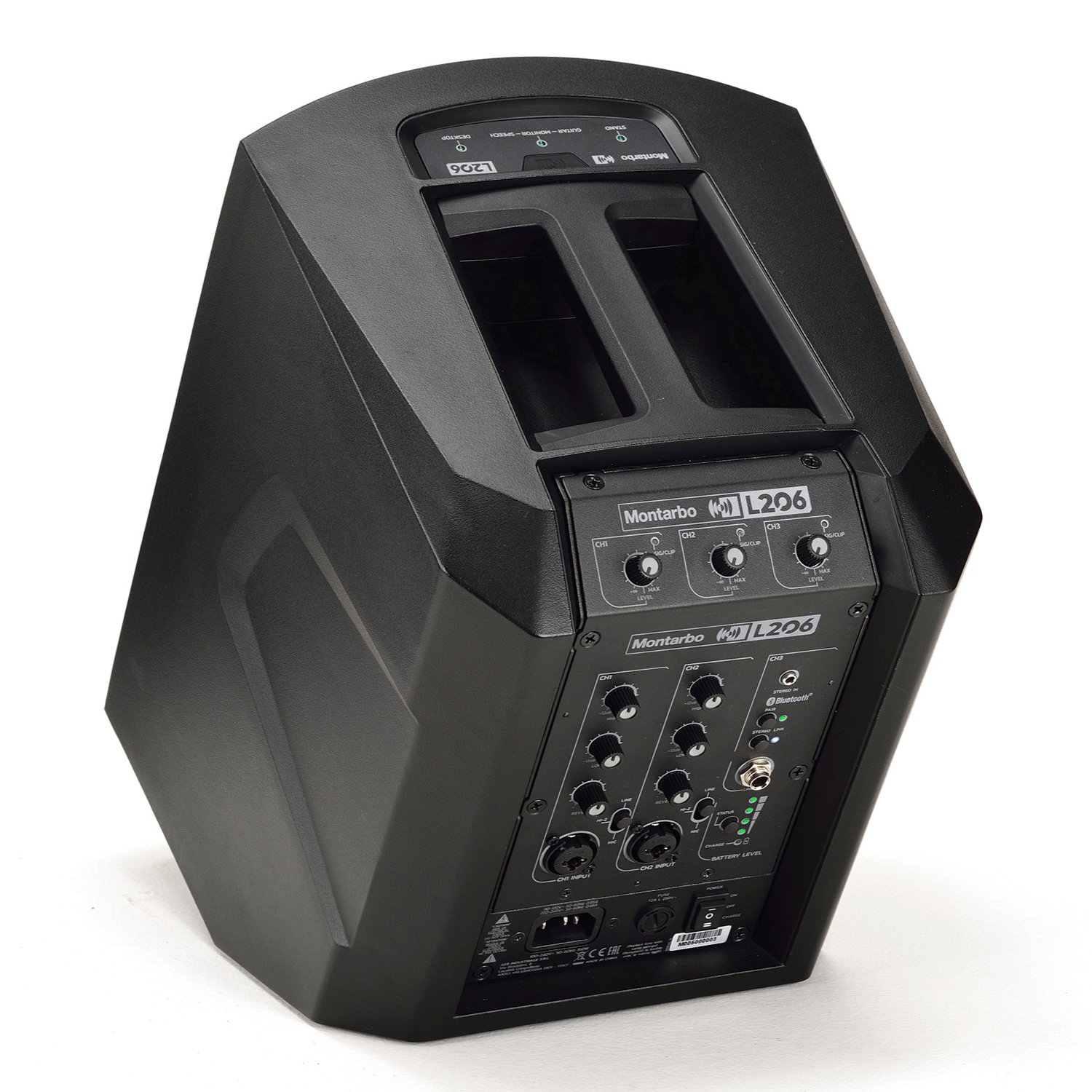 L206 está equipado con un mezclador integrado de tres canales que comprende 2 entradas combinadas Mic/Line con control de volumen independiente y efecto de reverberación ajustable, mientras que el tercer canal controla la entrada Line in AUX y la transmisión estéreo Bluetooth, lo que permite a los usuarios enviar una señal estéreo a 2 altavoces simultáneamente desde un solo dispositivo.