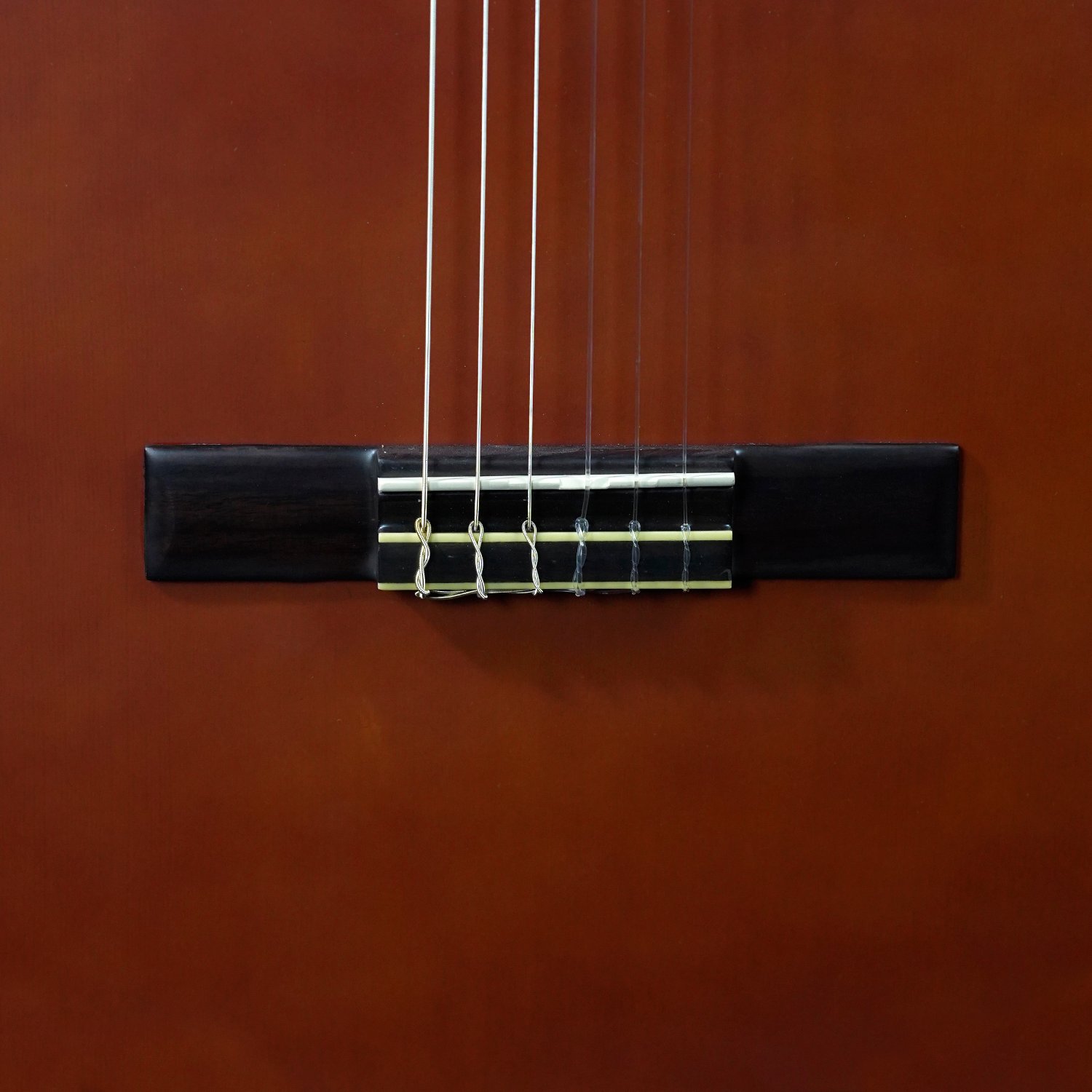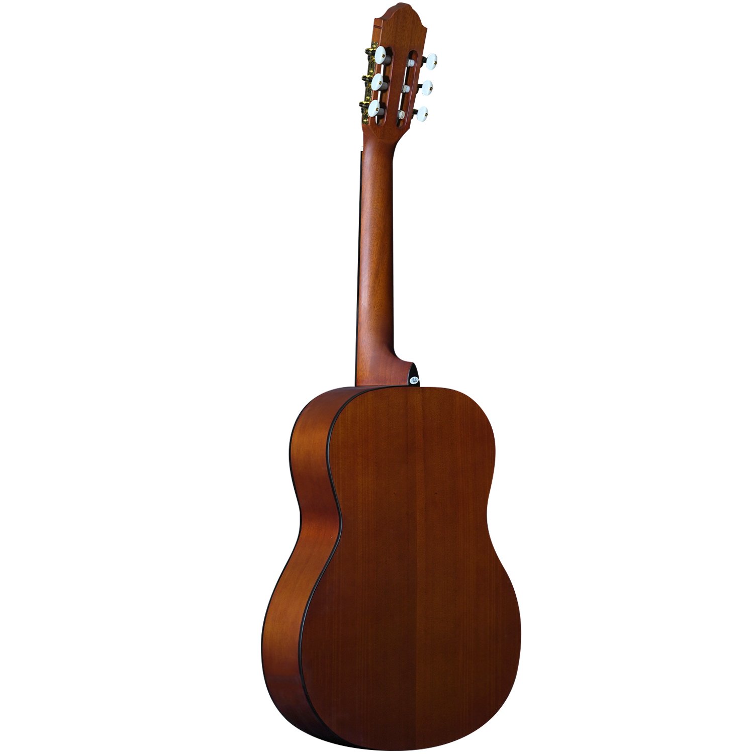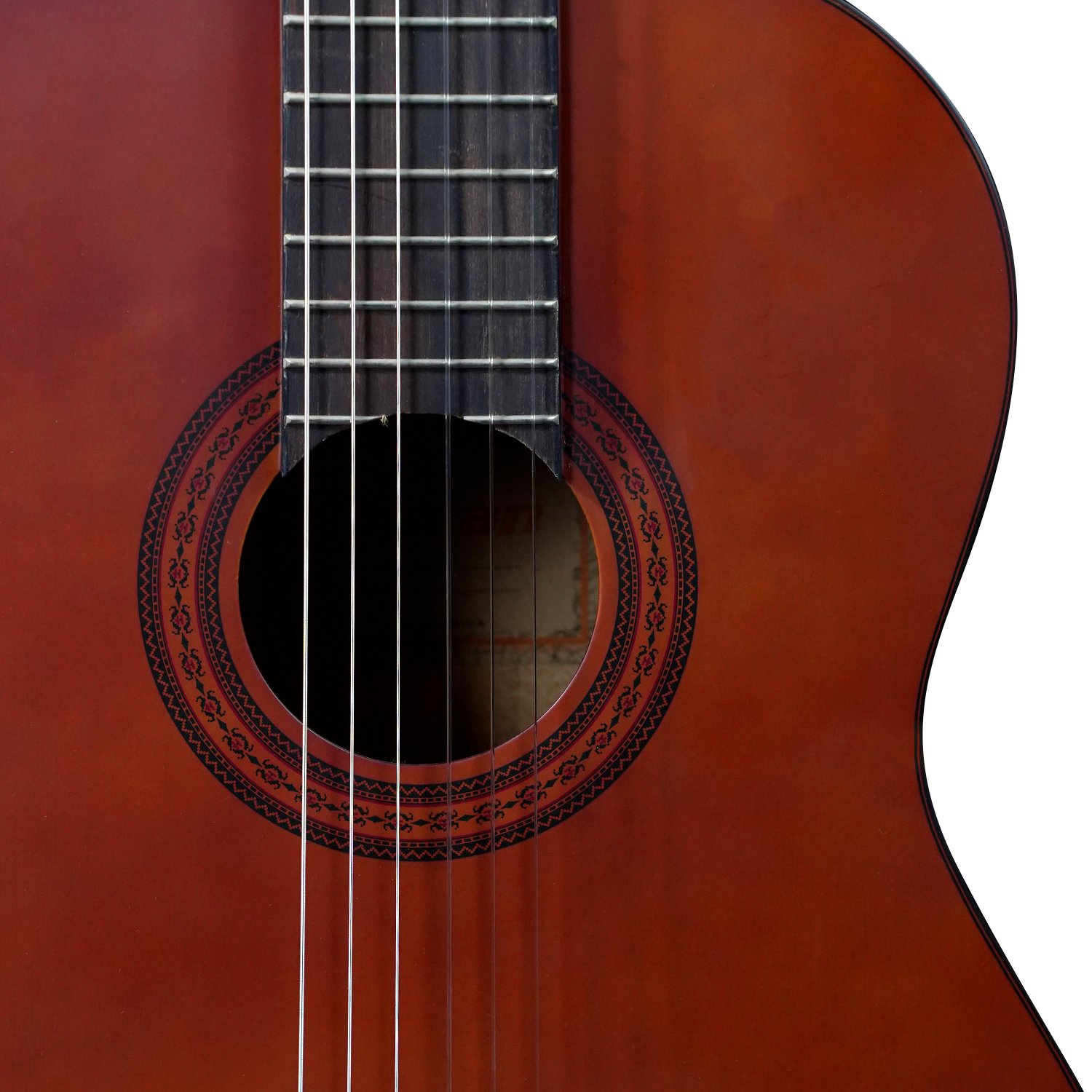 Su diseño redondo mantiene la estética tradicional de la guitarra clásica, proporcionando una ejecución confortable y una buena proyección acústica. Gracias a su construcción acústica, es una excelente opción para quienes buscan la esencia clásica sin necesidad de amplificación.