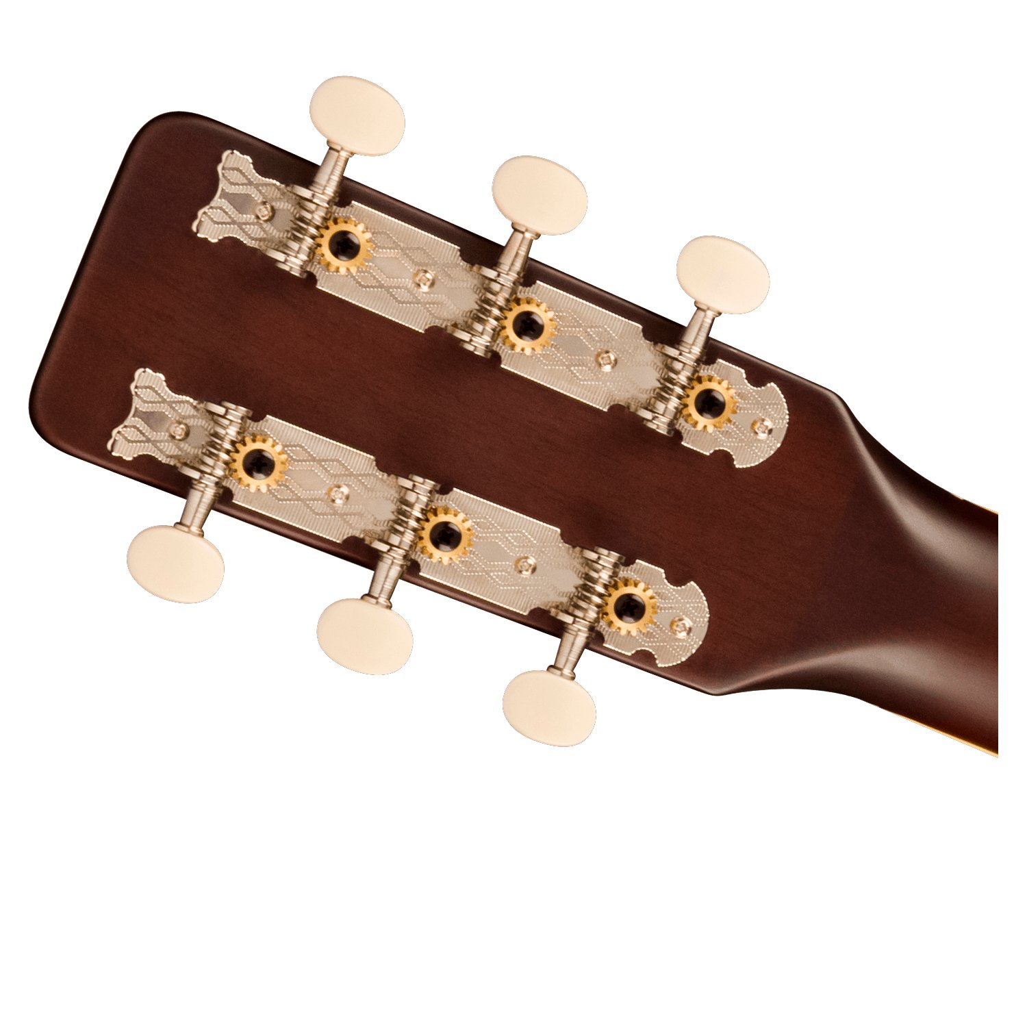 El cuerpo reforzado en X está fabricado con maderas laminadas ligeras seleccionadas para un equilibrio óptimo entre el tono vintage de madera y la durabilidad confiable, mientras que el mástil en forma de «C» presenta una sensación acogedora para horas de inspiración de antaño. Detalles correctos de la época como un puente de pasador de estilo vintage, golpeador con gráfico «G», fileteado de rayas pintadas, clavijas de afinación de engranaje abierto de 3 en una placa y Las incrustaciones de puntos extragrandes en el diapasón le confieren una personalidad nostálgica, ideal para cualquier concierto o jam session.