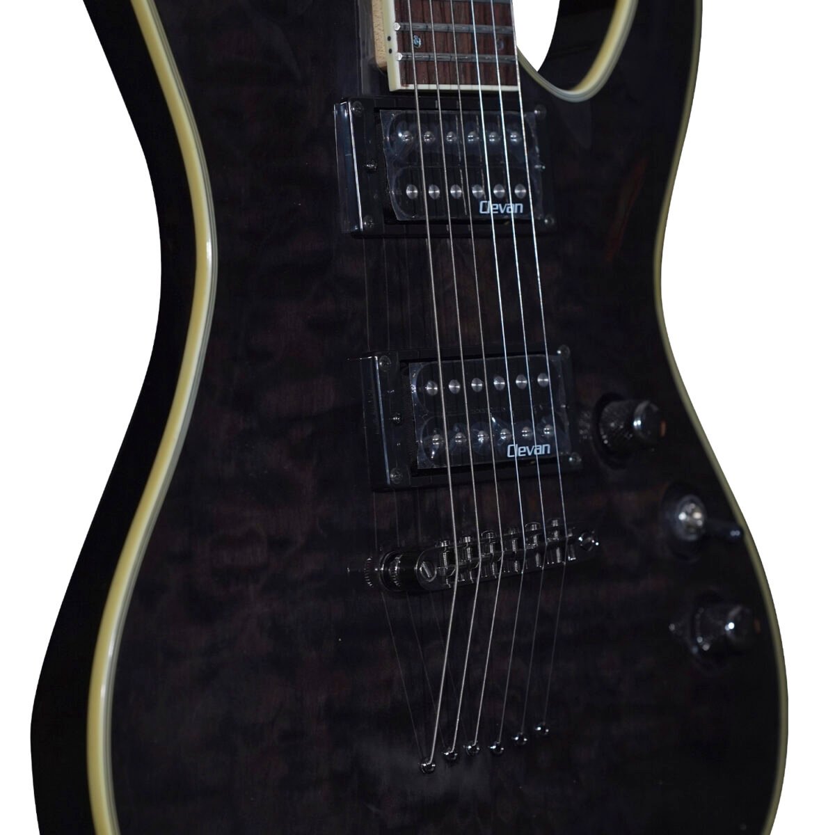 La CF-80/FR Black de Clevan es una guitarra eléctrica tipo Superstrat, ideal para músicos que buscan potencia, estabilidad y presencia en el escenario. Su cuerpo con acabado negro de alta calidad le da un look elegante y agresivo, mientras que el sistema Floyd Rose asegura una afinación precisa incluso con técnicas extremas como dive bombs y vibratos intensos. Equipada con 4 pastillas activas, ofrece una salida potente y un tono definido, perfecto para estilos como metal, hard rock y shred.