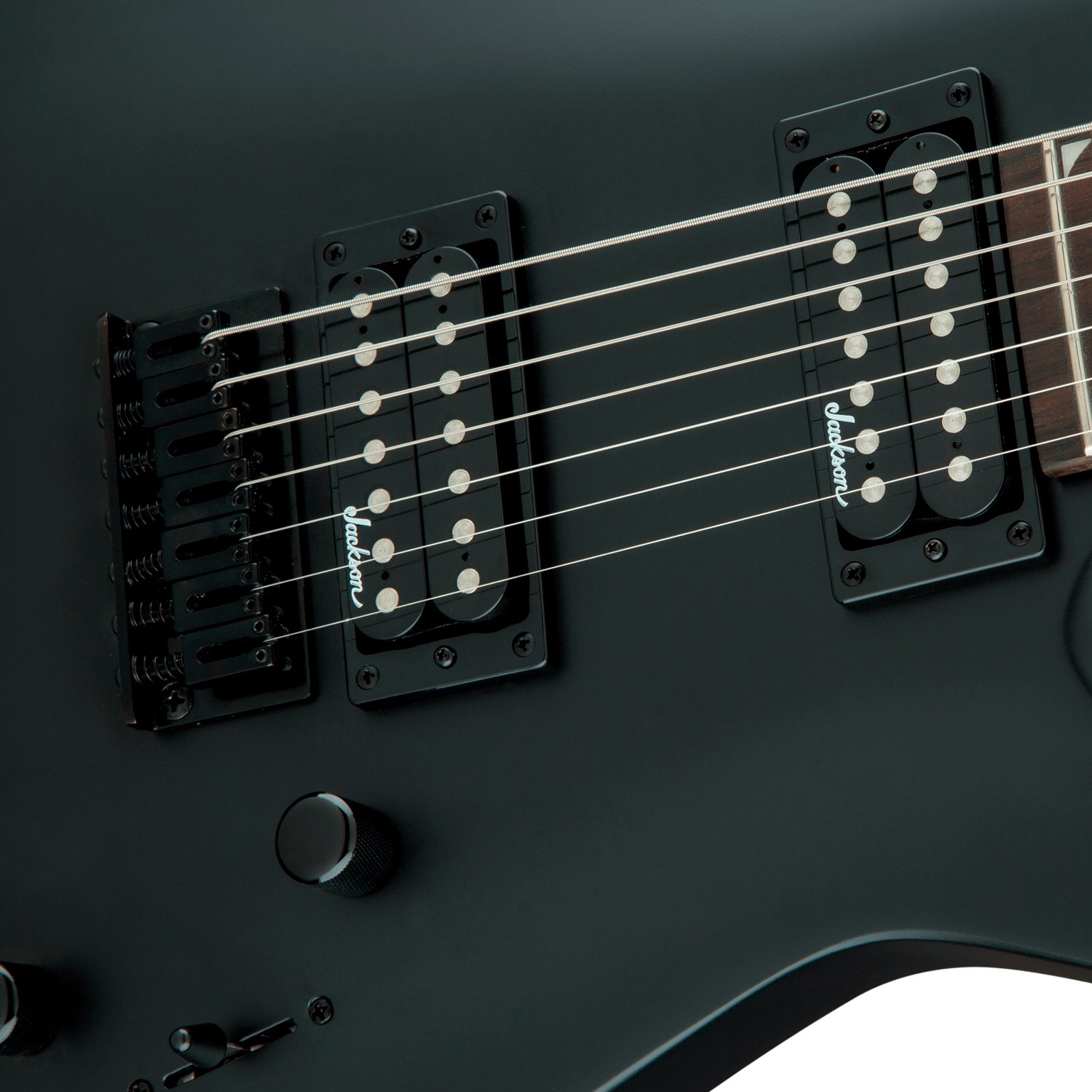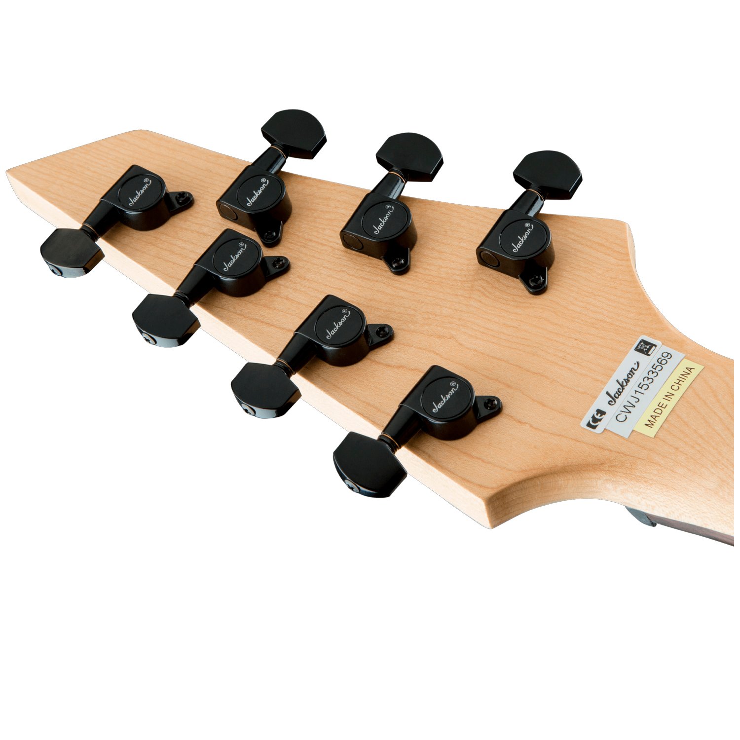 Impulsada por pastillas humbucker duales Jackson de alta potencia de montaje directo, la JS22-7 DKA HT también está equipada con un interruptor de tres posiciones, controles de volumen y tono individuales, puente fijo Jackson HT7 con cuerdas a través del cuerpo compensado, clavijeros sellados de fundición a presión y nuestra pala AT-1 de 3×4 (3 arriba, 4 abajo).