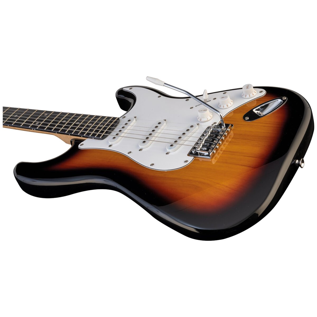 La S-300 Sunburst es la guitarra eléctrica de la serie «Tribute Starter» de Eko Guitars, con cuerpo de álamo, mástil de arce y diapasón de resina. Está equipada con pastillas Eko en configuración SSS, control de volumen, dos controles de tono, selector de 5 posiciones y puente con palanca de trémolo. Ideal para iniciarse en la guitarra eléctrica con un instrumento de alto rendimiento, cómodo y con una excelente relación calidad-precio.