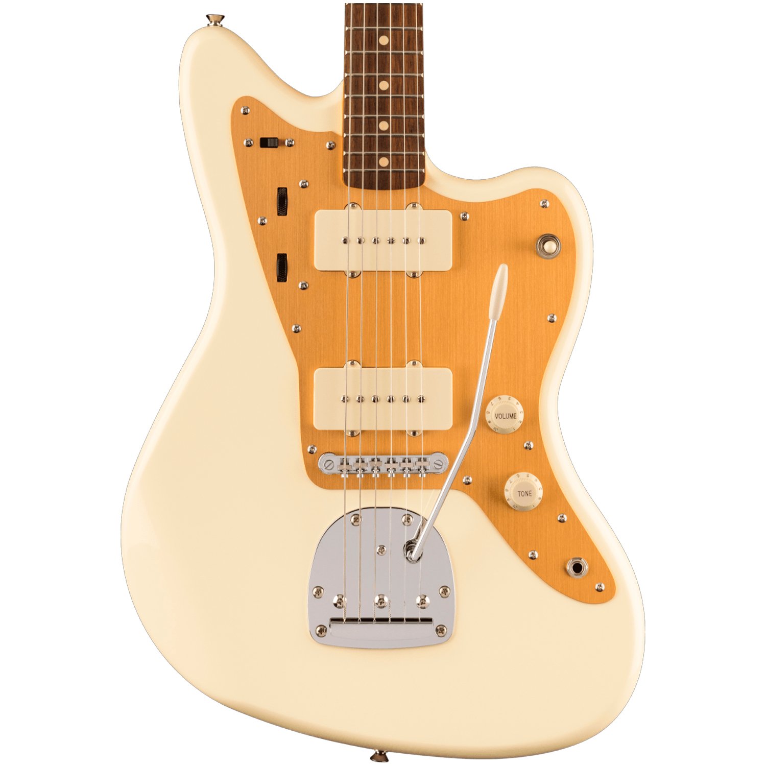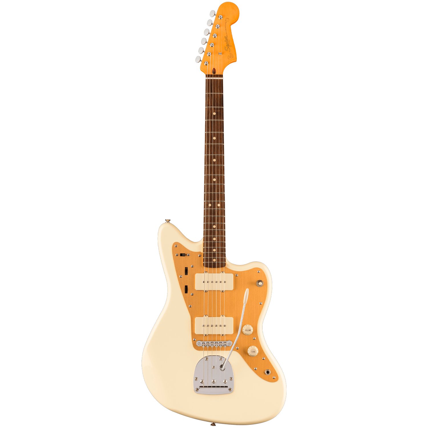 Squier honra al padrino del rock alternativo y al líder de los Dinosaur Jr., J Mascis, con una guitarra Jazzmaster nueva y atractiva que produce sonidos y actuaciones tan arrolladores como su homónimo. Las pastillas, herrajes y acabados los definen el propio Mascis para ofrecer sonido y valor tremendos. La J Mascis Jazzmaster presenta cuerpo de tilo americano, mástil de arce con forma de C, diapasón de palo rosa con radio de 9,5″ y 21 trastes jumbo, dos pastillas single-coil Jazzmaster con selector de tres posiciones y circuitos de doble tono, golpeador de aluminio anodizado dorado, piezas de plástico en blanco envejecido (cubiertas de perillas, punta de interruptor y pastillas), puente Adjusto-Matic™ con cordal de trémolo flotante de estilo vintage, Clavijero estilo vintage, herrajes cromados, acabado en Vintage White y firma de J Mascis en la parte trasera del clavijero grande estilo años 60.
