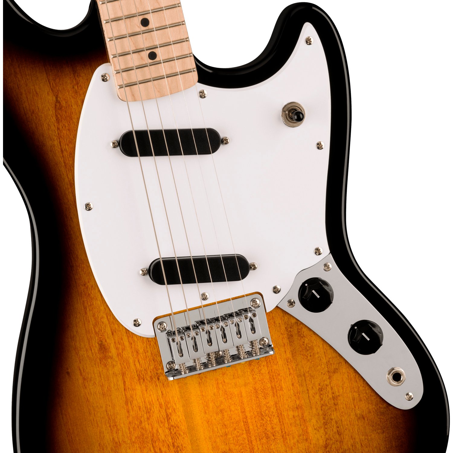 La Squier Sonic® Mustang® está lista para lanzar cualquier aventura musical a toda velocidad, ofreciendo el icónico estilo Fender® y un sonido inspirador para músicos de cualquier nivel. Esta Mustang luce un mástil delgado y atractivo en forma de «C» y un cuerpo fino y ligero para una comodidad óptima al tocar, mientras que un par de pastillas Squier® de bobina simple suenan con una claridad cristalina para una amplia variedad de tonos versátiles. Otros detalles de este modelo incluyen una escala corta de 24″, un puente rígido de 6 selletas para una entonación fiable, clavijeros sellados para una afinación suave y precisa y herrajes cromados duraderos que sin duda llamarán la atención.
