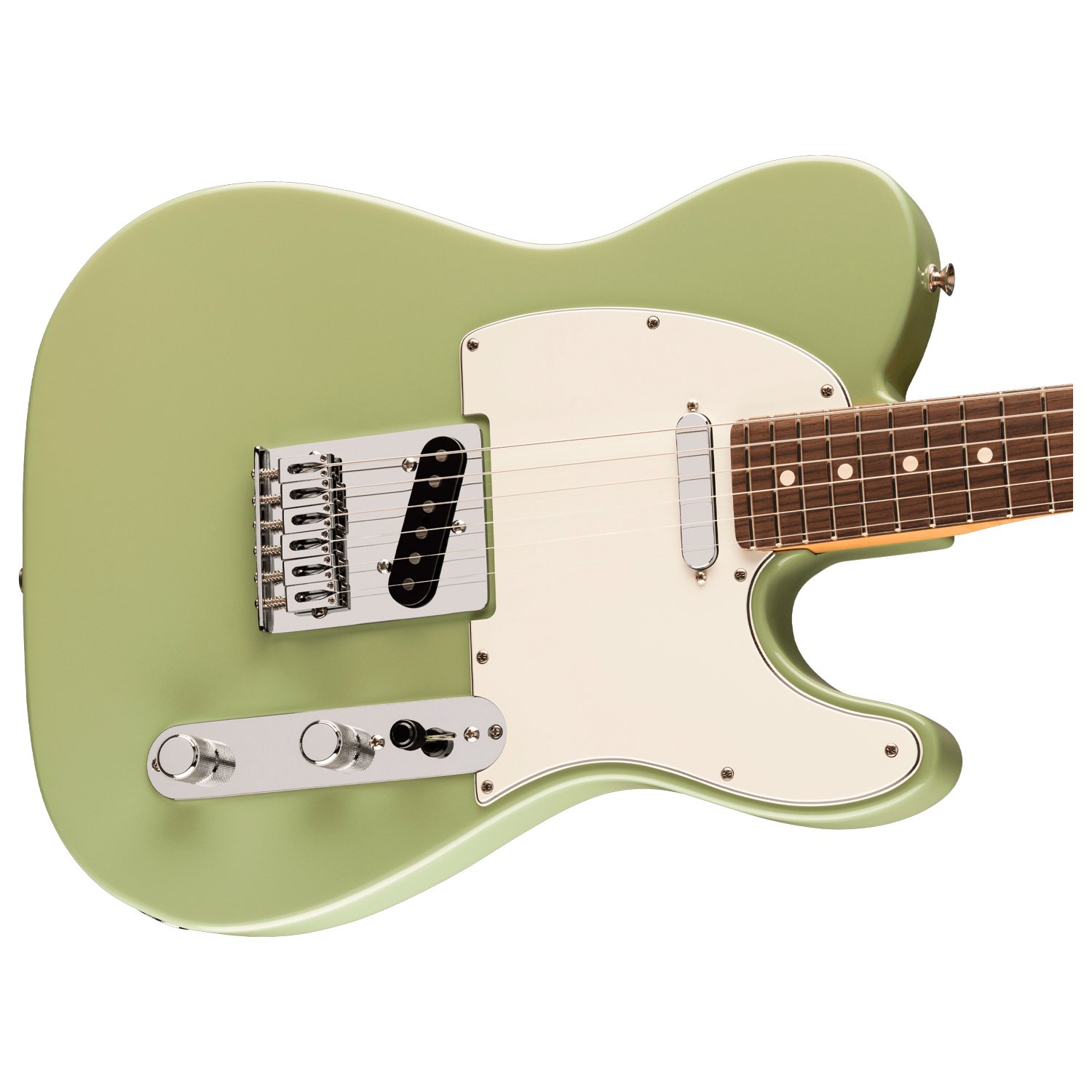 La Player II Telecaster irradia el encanto eterno de Fender, pero debajo de su capó, está preparada para los músicos de hoy. Todo en el mástil está diseñado para una ejecución rápida y fluida, desde el moderno perfil en «C» con un sedoso acabado de uretano satinado en la parte posterior hasta el cómodo diapasón de palisandro o arce con radio de 9.5″ con bordes lisos y 22 trastes medium jumbo. Elija entre cuerpos de aliso, fresno con cámaras o caoba con cámaras, disponibles tanto en acabados clásicos de Fender como en colores nunca antes vistos, rescatados de los archivos. Las pastillas Player Series Alnico V Single-Coil Tele® ofrecen agudos cristalinos, medios musicales y graves ajustados que elevan cualquier género. El selector de 3 posiciones le permite ajustar todo, desde el suave timbre de la pastilla del mástil hasta el agudo twang de la pastilla del puente y todos los puntos intermedios, mientras que un puente de 6 selletas, selletas de acero de bloque y afinadores ClassicGear™ garantizan una estabilidad de afinación precisa para la flexibilidad de explorar infinitas posibilidades sonoras.
