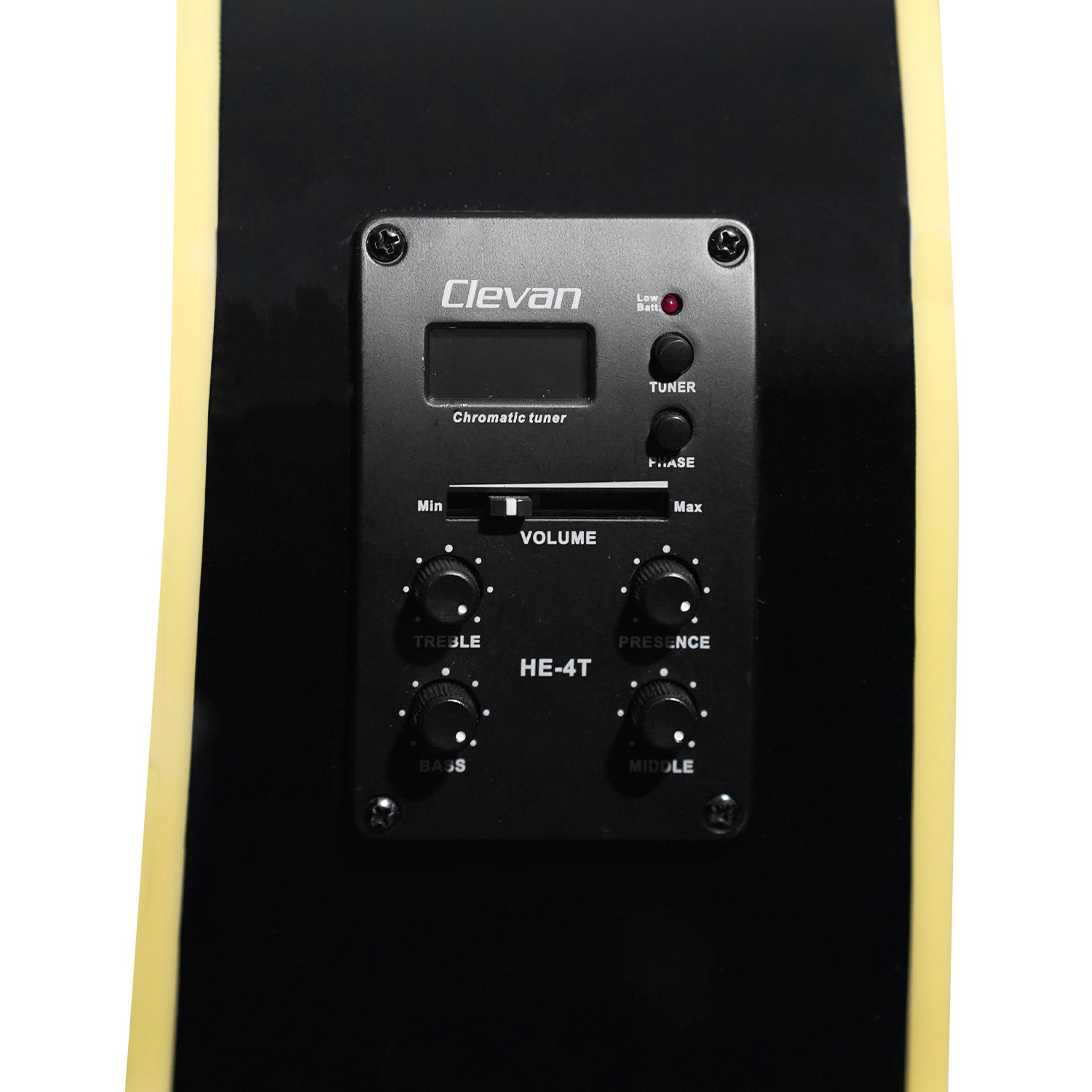 La Clevan SAC10E es una guitarra electroacústica diseñada para ofrecer versatilidad y comodidad tanto en formato acústico como amplificado. Equipada con cuerdas de metal, brinda un sonido brillante, definido y con buena proyección, ideal para diversos estilos musicales.