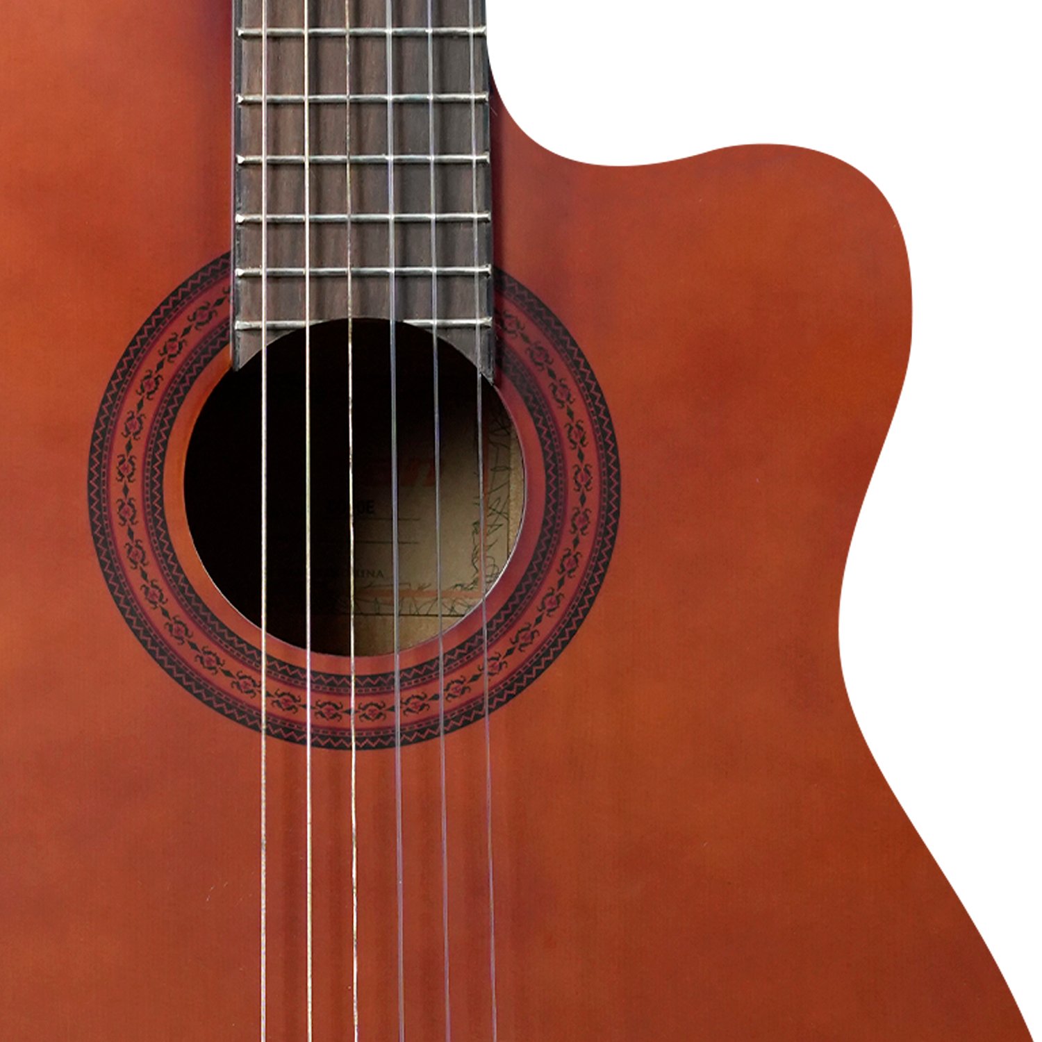 Cuenta con cuerdas de nylon que brindan una ejecución suave y cómoda, junto a un diseño redondo con corte, ideal para acceder con mayor facilidad a los trastes superiores sin sacrificar resonancia ni balance tonal. Es una excelente opción tanto para estudiantes como para músicos que buscan practicidad y buen desempeño en formato acústico y amplificado.