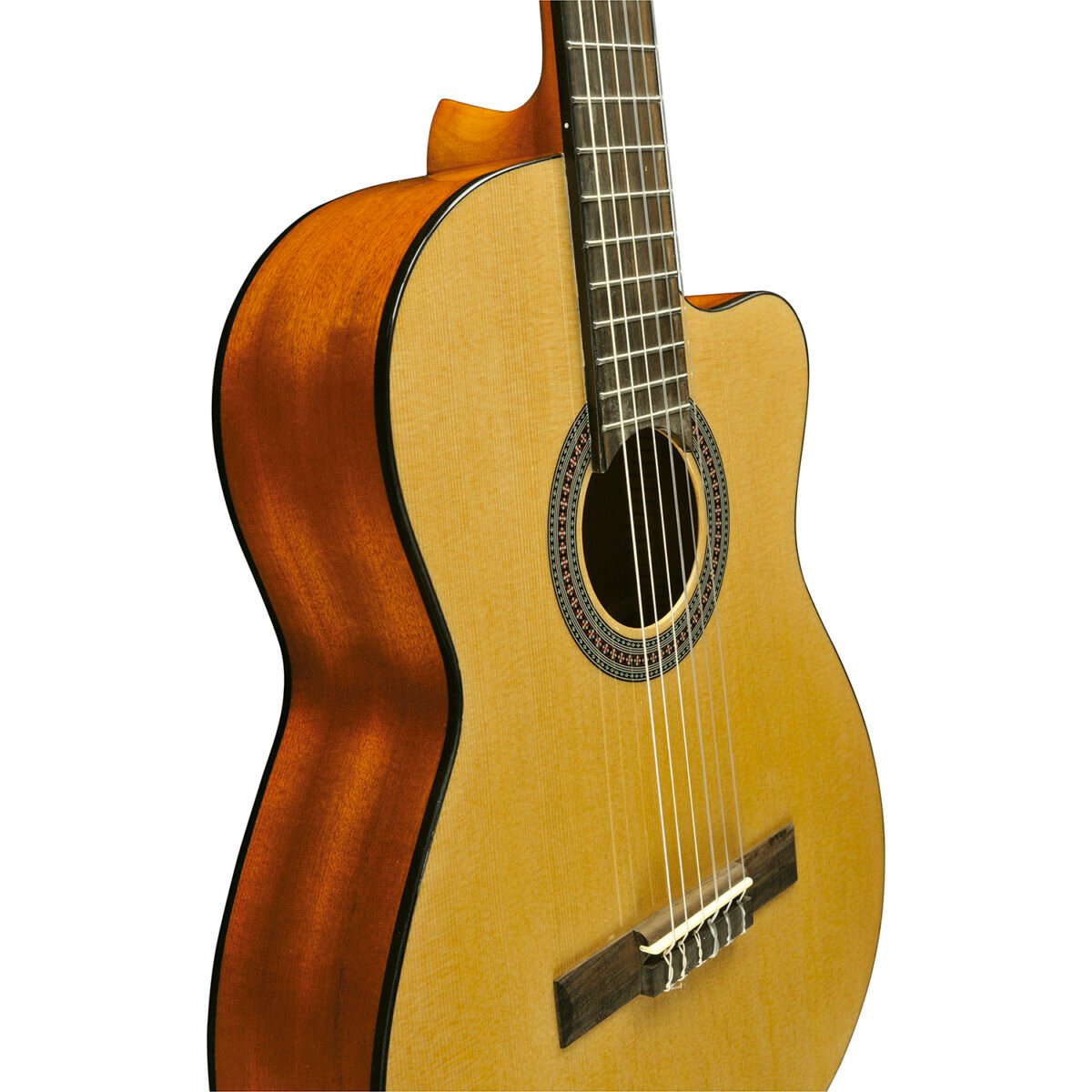 La Vibra 150 CW EQ Natural es la guitarra clásica electrificada con cutaway de la serie «Vibra» de Eko Guitars, amplificada con el sistema Eko G03. Cuenta con tapa de abeto, fondo y aros de caoba laminada, mástil de caoba y diapasón de roupana sudamericana. Es ideal para quienes desean iniciarse en el estudio de la guitarra y para quienes buscan una guitarra de nylon amplificada que pueda usarse tanto en el escenario como en el estudio, especialmente cómoda para tocar en los trastes más agudos gracias a su forma cutaway.