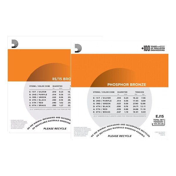 Set de 2 juegos de cuerdas D’Addario EZ900 / EJ15 Ultra Pack de cuerdas de Acero para guitarras tipo Folk, Alta calidad y el mejos sonido y desempeño, Manufacturadas en Usa