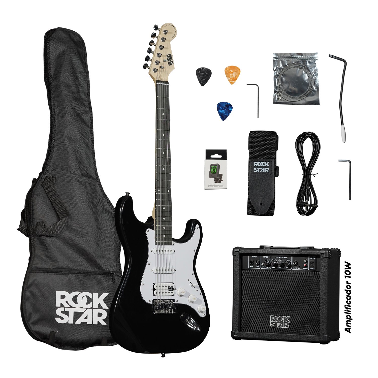 El Pack de Guitarra Eléctrica Rockstar es la opción ideal para quienes desean iniciarse en el mundo de la guitarra con todo lo necesario desde el primer día. Este set completo incluye una guitarra eléctrica de excelente sonido y construcción, junto con todos los accesorios esenciales para practicar, tocar y transportar tu instrumento con comodidad. Gracias a su diseño cómodo, su sonido versátil y su precio accesible, este pack se convierte en la mejor elección para principiantes, estudiantes o aficionados que buscan calidad y practicidad en un solo paquete.