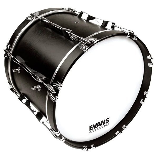 La serie Evans™ MX™ Marching Bass 2-Ply incluye un sistema de amortiguación de tono único que se puede manipular aplicando arcos de fieltro individuales (incluidos) para mejorar la articulación y enfocar los graves tanto para marchas en interiores como en exteriores.