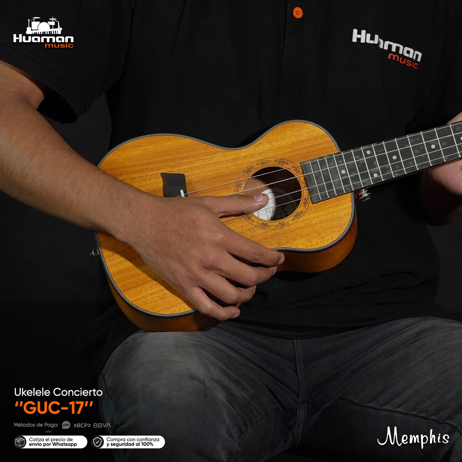 El Ukulele Concierto Memphis está construido íntegramente en madera de okume, lo que le otorga un tono cálido, balanceado y con gran proyección. Su diseño combina simplicidad y elegancia, convirtiéndolo en un instrumento confiable tanto para quienes están aprendiendo como para músicos que buscan un ukulele versátil y de sonido auténtico.