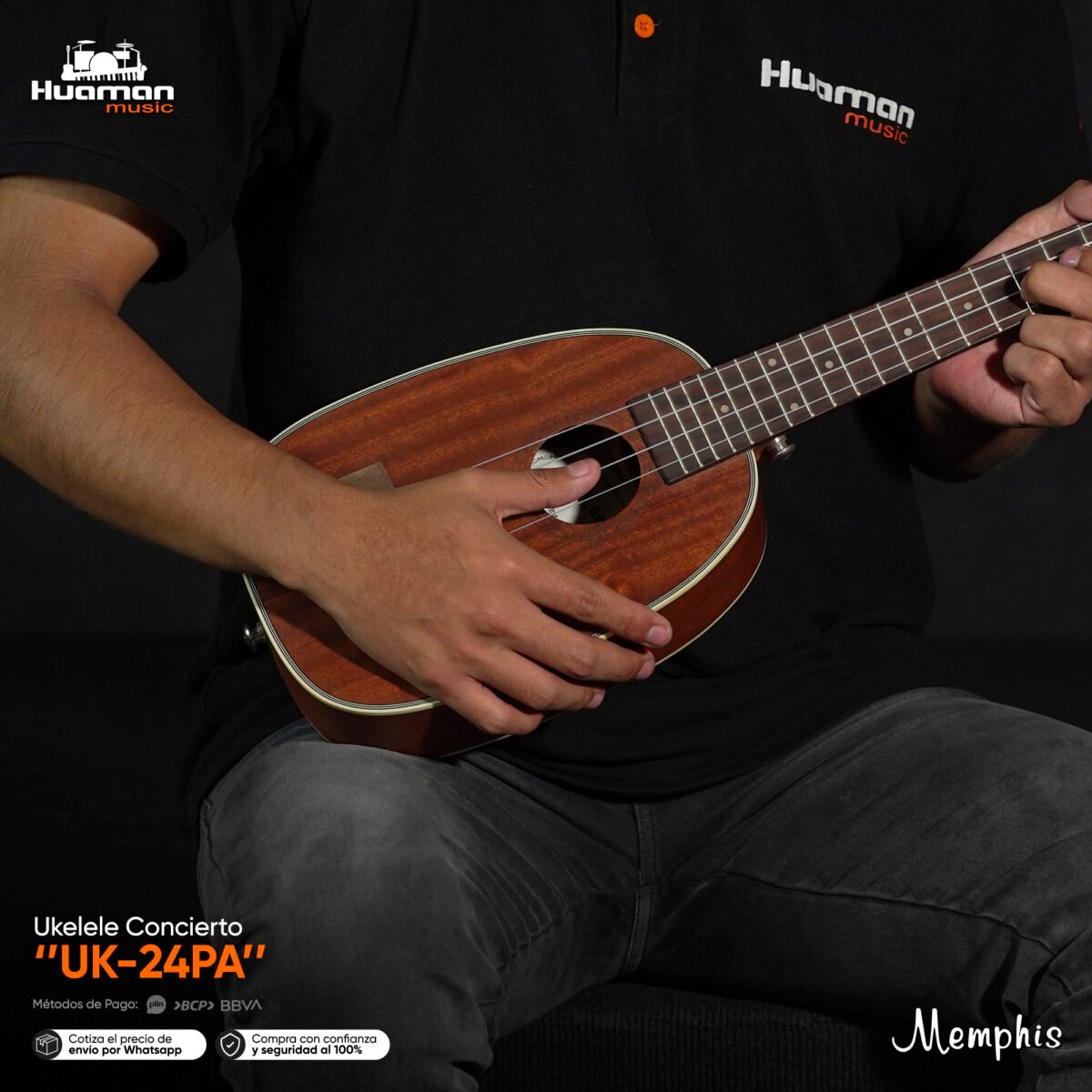 El Ukulele Concierto Memphis está construido íntegramente en madera de okume, lo que le otorga un tono cálido, balanceado y con gran proyección. Su diseño combina simplicidad y elegancia, convirtiéndolo en un instrumento confiable tanto para quienes están aprendiendo como para músicos que buscan un ukulele versátil y de sonido auténtico.