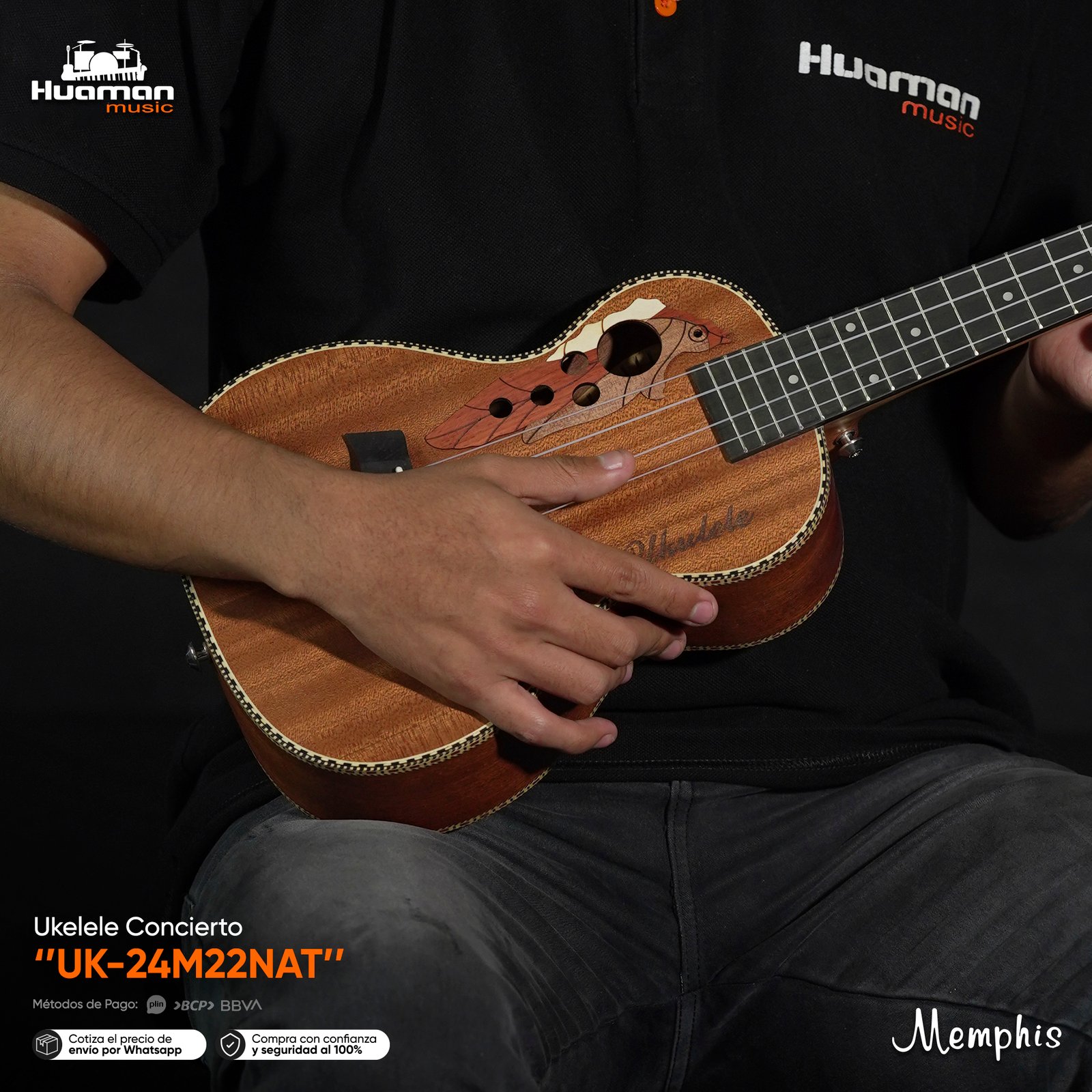 El Ukulele Concierto Memphis combina un diseño llamativo con maderas cuidadosamente seleccionadas para ofrecer un instrumento que no solo luce increíble, sino que también inspira a tocar desde el primer acorde. Su tamaño de concierto brinda comodidad y un tono balanceado, ideal tanto para quienes empiezan en el mundo del ukulele como para músicos que buscan un sonido versátil y lleno de carácter.