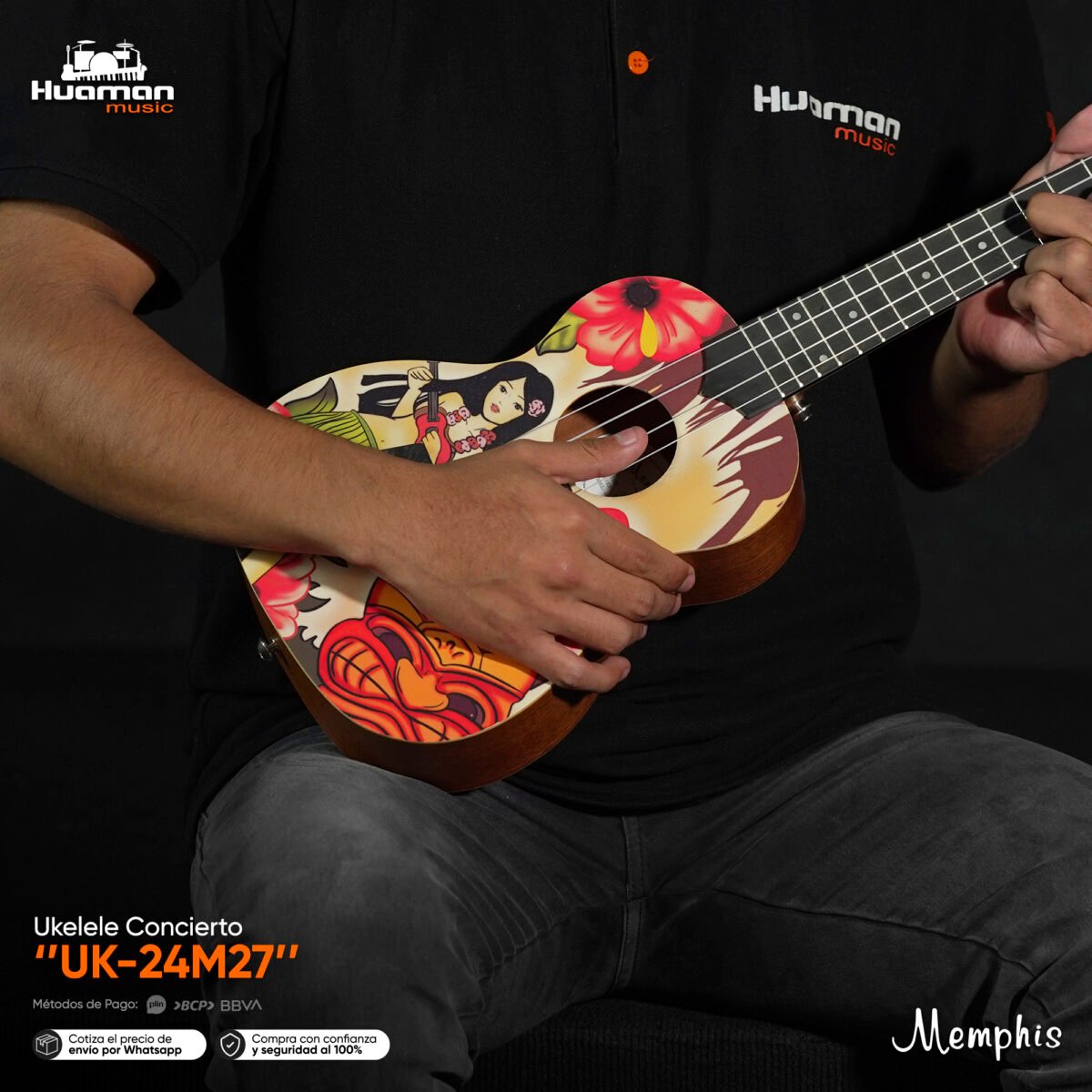El Ukulele Concierto Memphis combina un diseño llamativo con maderas cuidadosamente seleccionadas para ofrecer un instrumento que no solo luce increíble, sino que también inspira a tocar desde el primer acorde. Su tamaño de concierto brinda comodidad y un tono balanceado, ideal tanto para quienes empiezan en el mundo del ukulele como para músicos que buscan un sonido versátil y lleno de carácter.