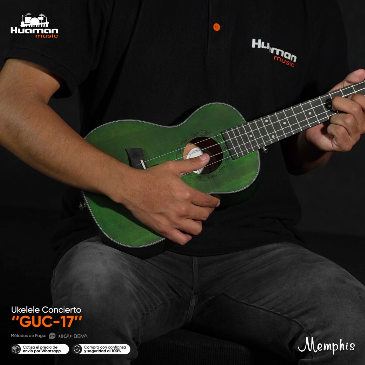 El Ukulele Concierto Memphis está construido íntegramente en madera de okume, lo que le otorga un tono cálido, balanceado y con gran proyección. Su diseño combina simplicidad y elegancia, convirtiéndolo en un instrumento confiable tanto para quienes están aprendiendo como para músicos que buscan un ukulele versátil y de sonido auténtico.