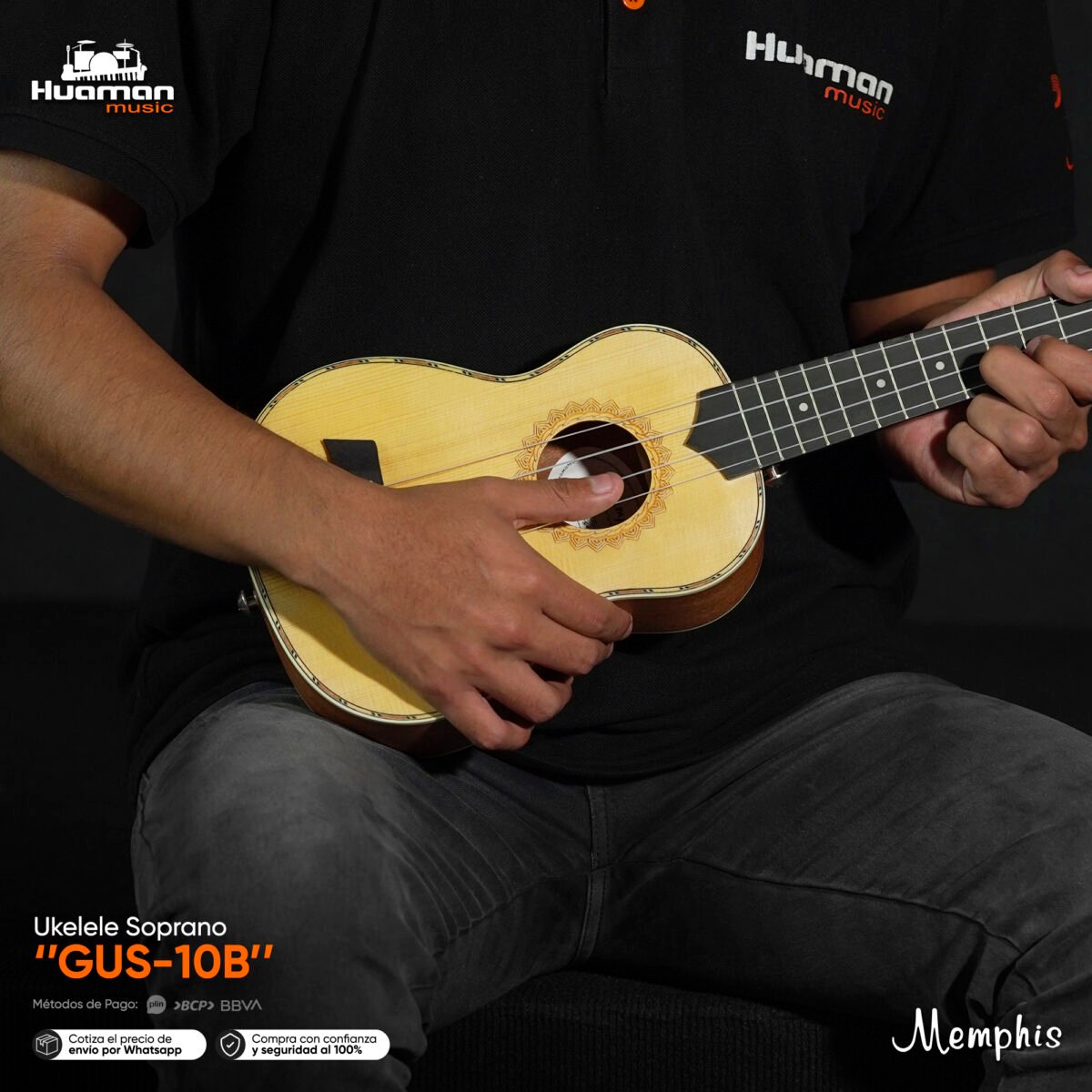 El Ukulele Soprano Memphis es el más compacto y tradicional de la familia, perfecto para quienes buscan un instrumento ligero, práctico y con el sonido brillante que caracteriza a este tamaño. Su construcción en maderas de calidad combina brillo y calidez, ofreciendo un tono alegre y definido que inspira desde la primera nota. Ideal para principiantes, niños o músicos que quieran un ukulele fácil de llevar a todas partes.