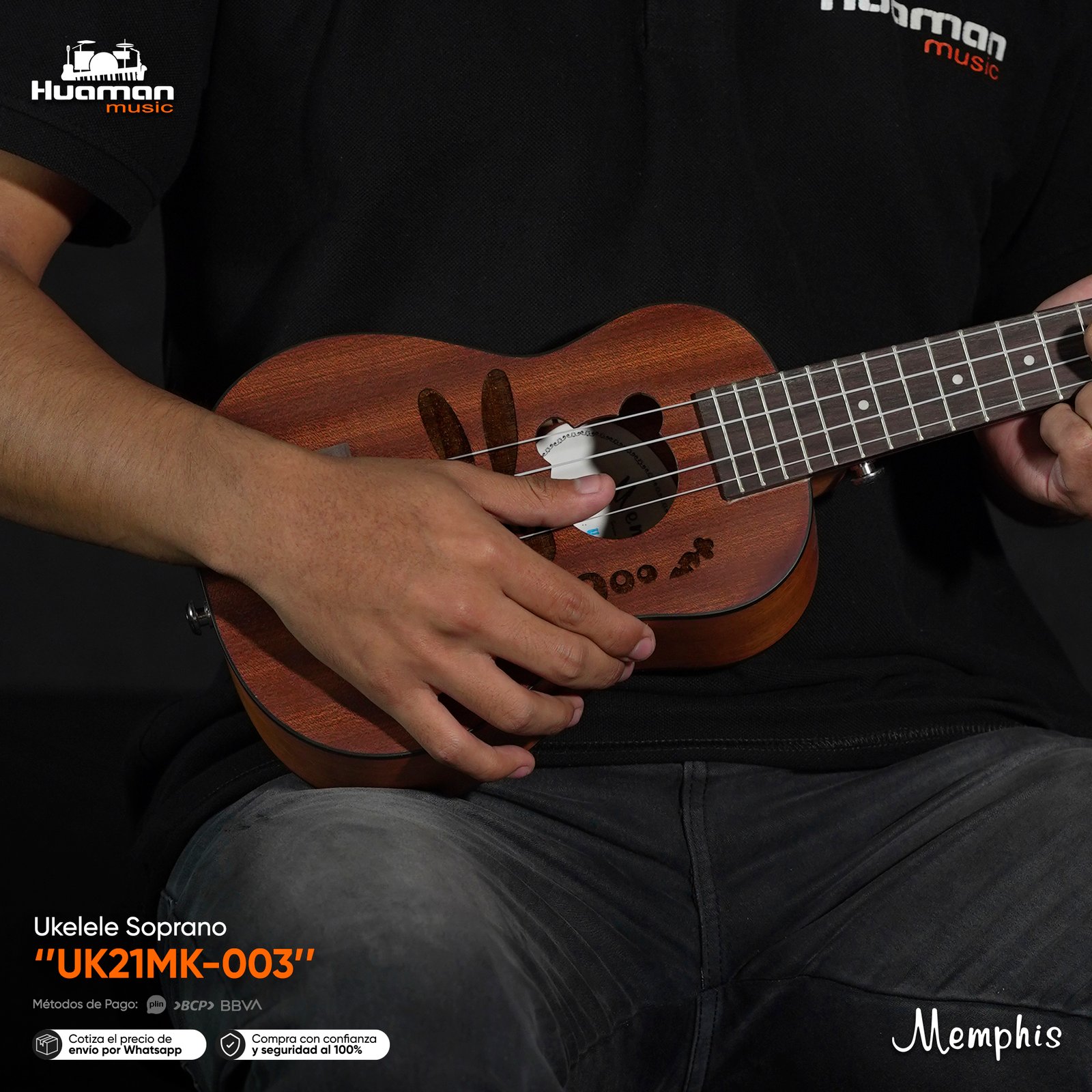 El Ukulele Soprano Memphis es el más compacto y tradicional de la familia, perfecto para quienes buscan un instrumento ligero, práctico y con el sonido brillante que caracteriza a este tamaño. Su construcción en maderas de calidad combina brillo y calidez, ofreciendo un tono alegre y definido que inspira desde la primera nota. Ideal para principiantes, niños o músicos que quieran un ukulele fácil de llevar a todas partes.