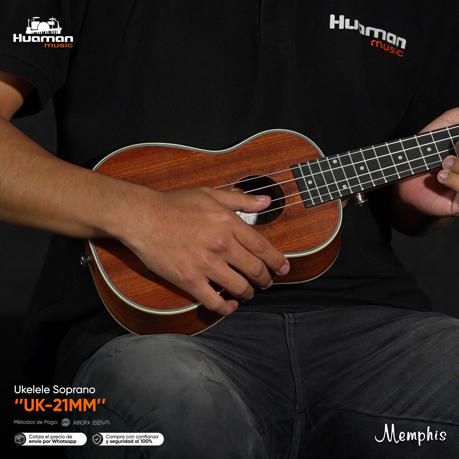 El Ukulele Soprano Memphis es el más compacto y tradicional de la familia, perfecto para quienes buscan un instrumento ligero, práctico y con el sonido brillante que caracteriza a este tamaño. Su construcción en maderas de calidad combina brillo y calidez, ofreciendo un tono alegre y definido que inspira desde la primera nota. Ideal para principiantes, niños o músicos que quieran un ukulele fácil de llevar a todas partes.